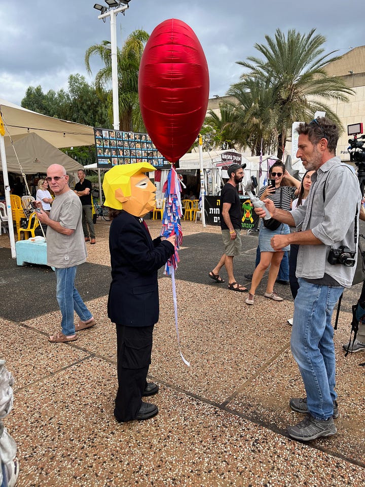 This morning, as the rain petered out to a drizzle, the square filled up again. Journalists were interviewing anyone willing to speak into a microphone. One woman, wearing a paper replica of Trump’s head, was carrying a giant heart-shaped balloon. A reporter asked her what the meaning of it was. “To show all the love he gets from the people. He deserves all this love,” she replied.